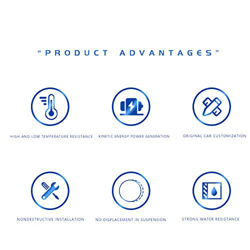 • Advantages: magnetic suspension without displacement, kinetic energy power generation, strong waterproof performance, normal application in rainy days, no need to worry about damaged parts, simple and convenient installation of the original car slot, non-destructive installation, original car detent, 3D prominent surface, high temperature resistant base, cool, dynamic, handsome