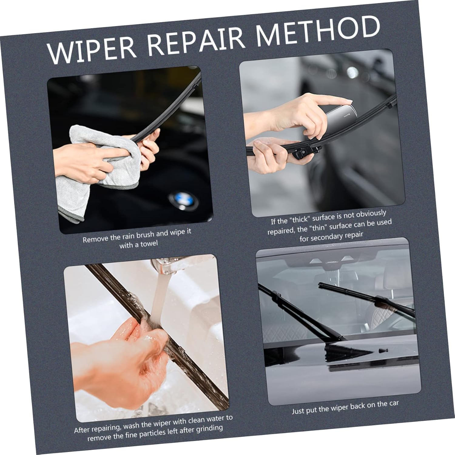 Car wiper strip repair: suitable for wiper strip problems such as abrasion, blurred water, aging in the sun, noise, stains, unclear vision, etc.