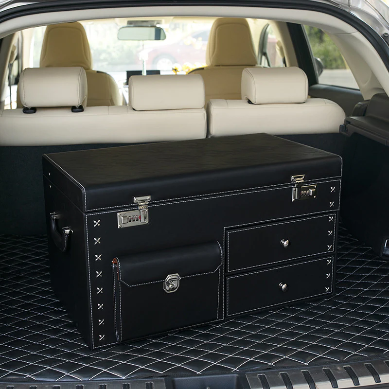 ✔️ 【 Advantage 】 Waterproof leather material. Waterproof, stain resistant, dustproof, shiny and clean with a gentle wipe, easy to maintain and manage. Password lock, large capacity, gravity anti slip. alloy round nails, fashionable and exquisite rivets, three-dimensional alloy dripping glue, smooth and gentle alloy thick handheld, soft and thick plush cloth lining, wear-resistant and non pilling, shaking and anti-collision. pressed down on the trunk of the storage box, fearless of any bumps.