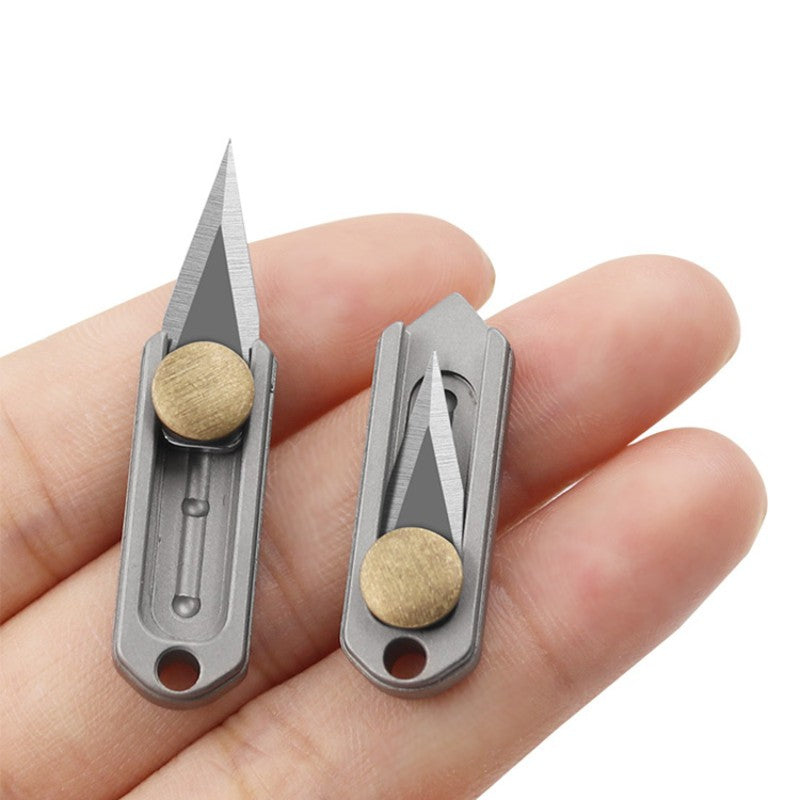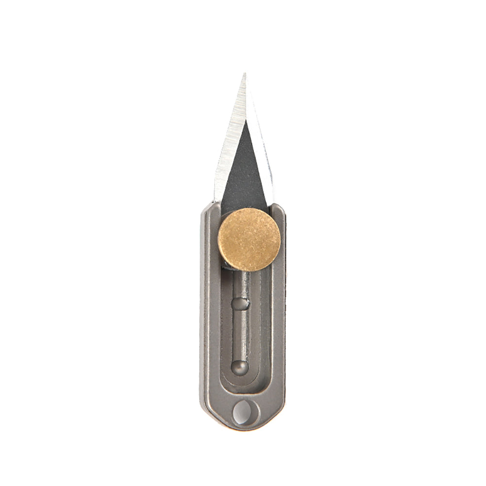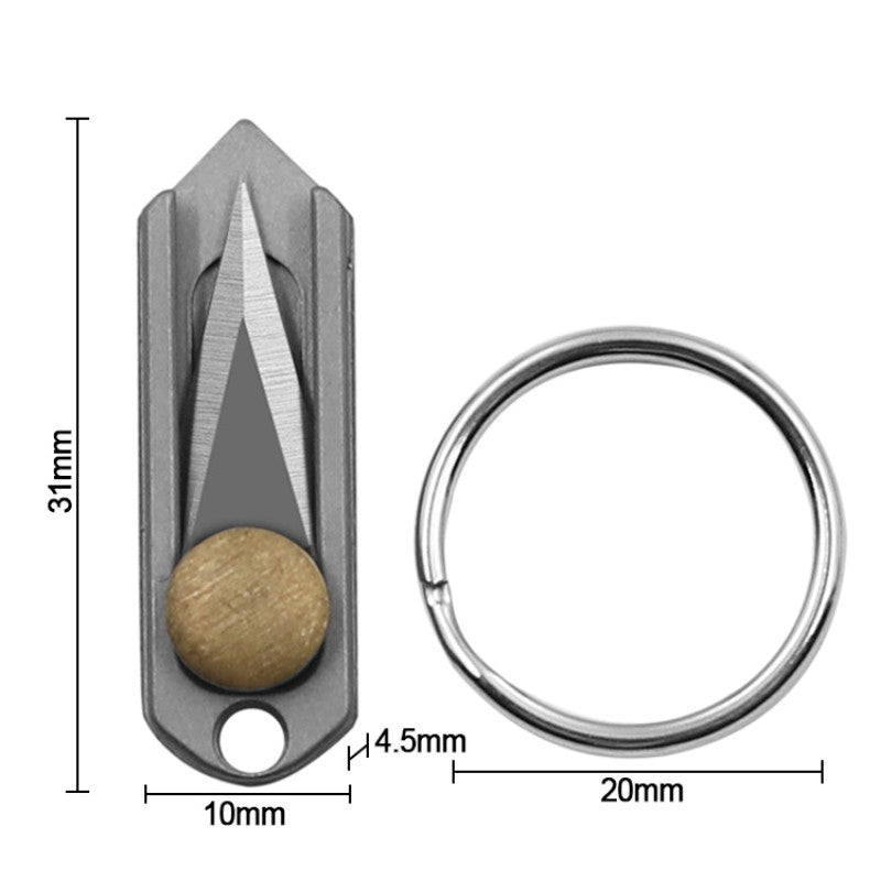 Description:Material: Titanium + stainless steel/BrassSize:Length:31mm Width:10mm Thickness:5mm Blade length:16mm Widest point:7mm Mini cute keychain pendant, Titanium material, instantly enhances the standard.Portable and sharp demolition courier knife, easy to carry.