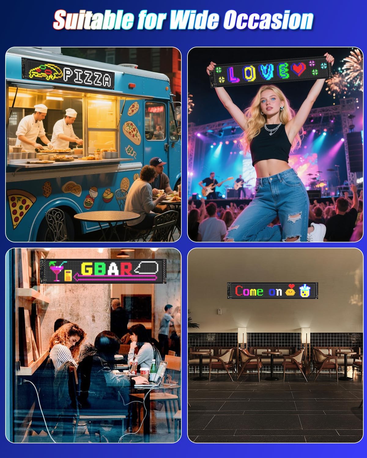[Fully Customizable and Creative] Unleash your imagination with our programmable LED matrix! Choose from built-in animations, holiday themes, and text templates, or create your own designs. Adjust brightness, color, scrolling speed, and even add special effects to individual letters. 【Ultra-thin and durable design】At only 2mm thick, our flexible LED eyes for car windshields bend easily for convenient placement and folding. The rugged IP65 waterproof construction withstands all weather conditions while maintaining a vibrant display.