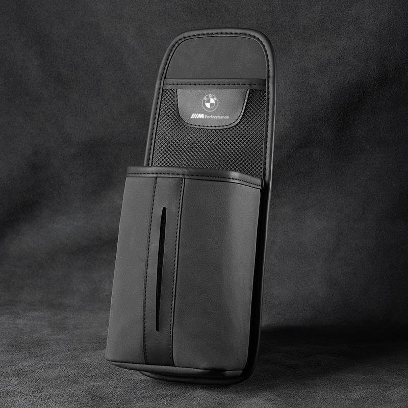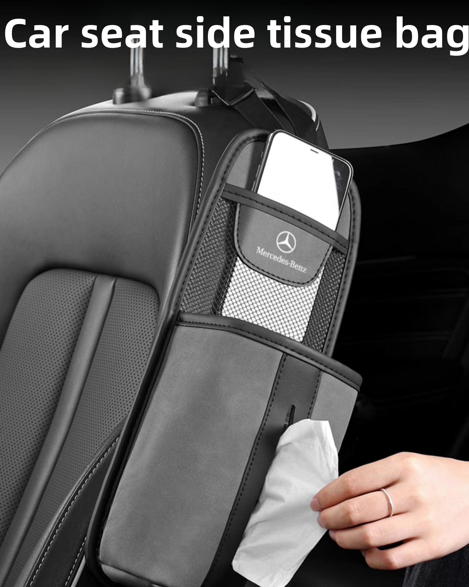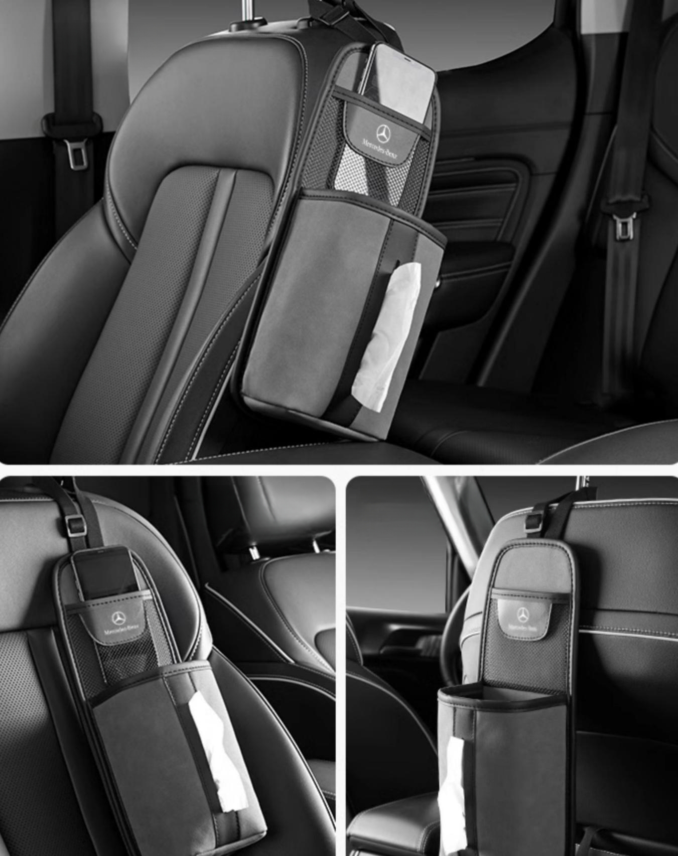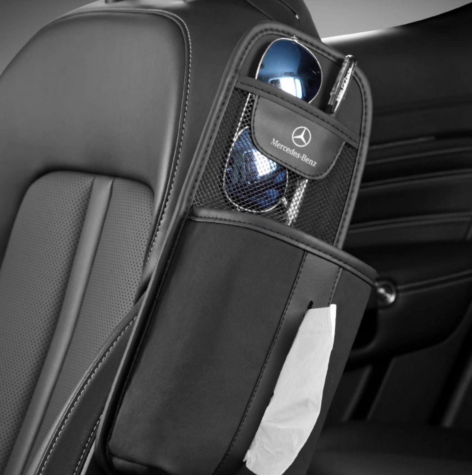 It can be hung in multiple positions on the side of the seat, in front of the seat, and on the back of the seat.