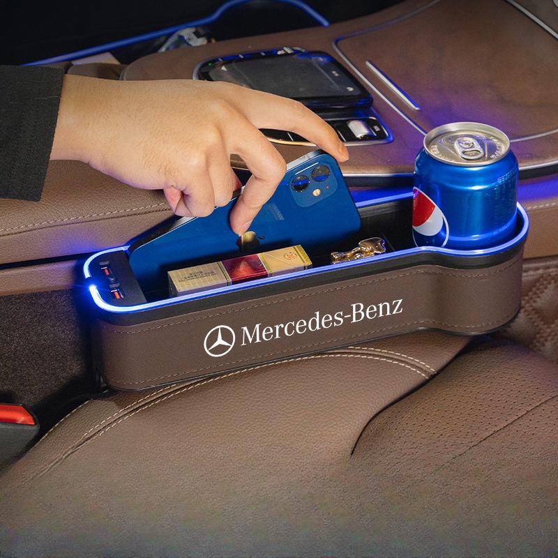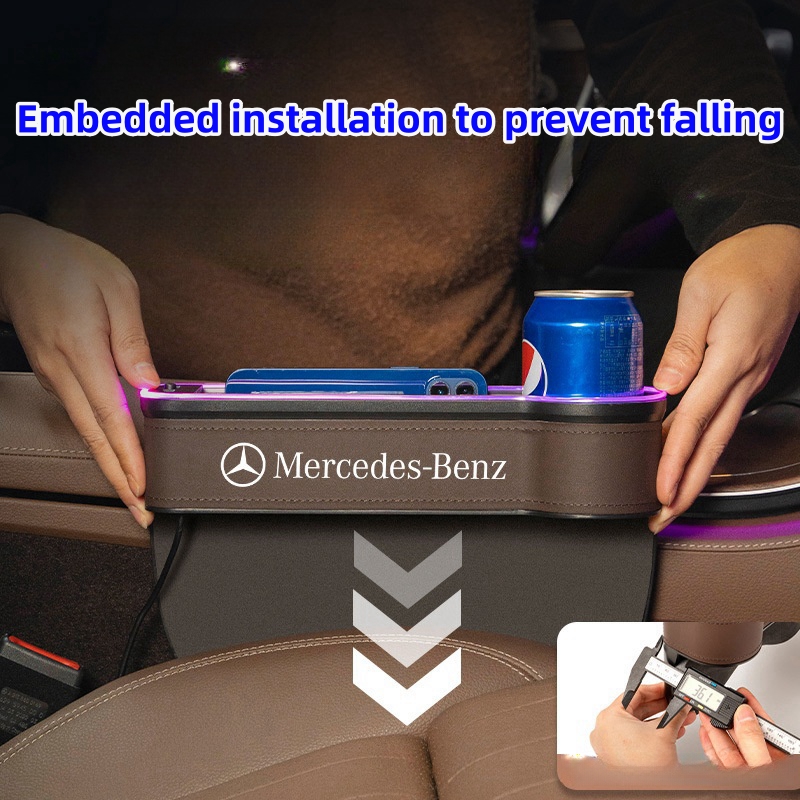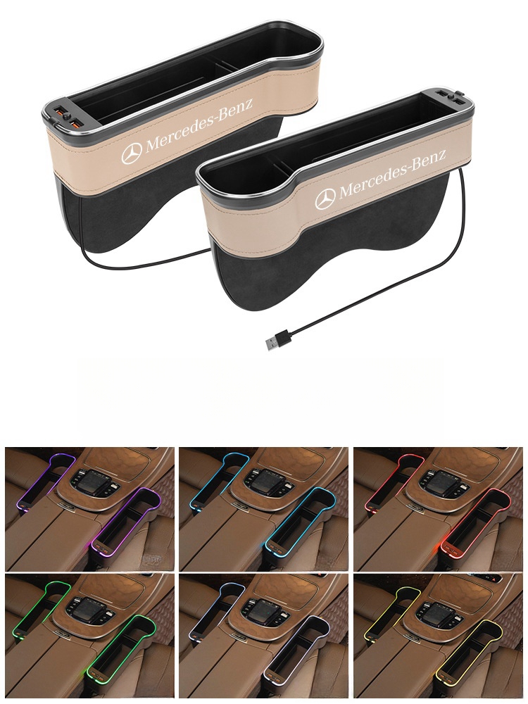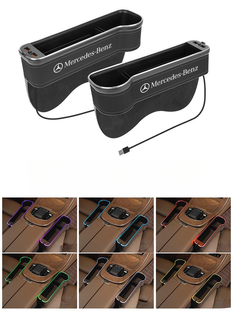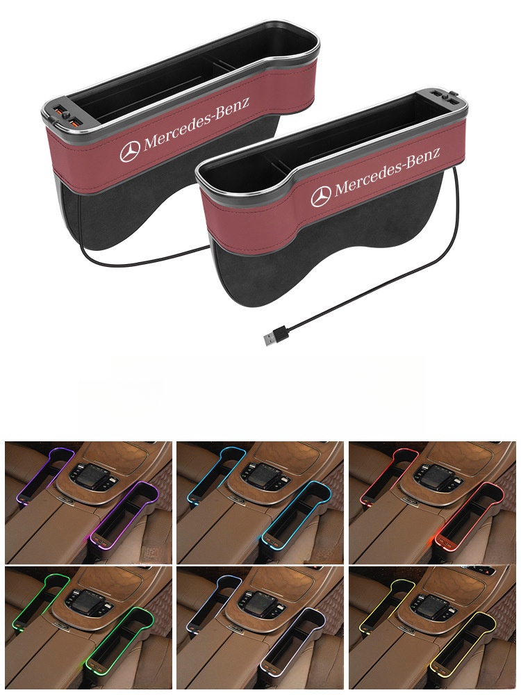 Built in LED light strip:Each car seat gap filler storage box has a small button, which you can press to turn on or off the organizer's light. The LED atmosphere light has seven colors, which can not only provide light sources to search for items in the car, but also create a good atmosphere at night to increase the luxury of the car