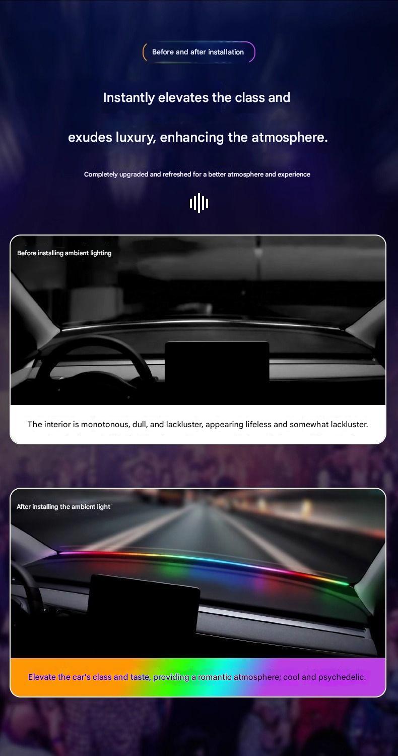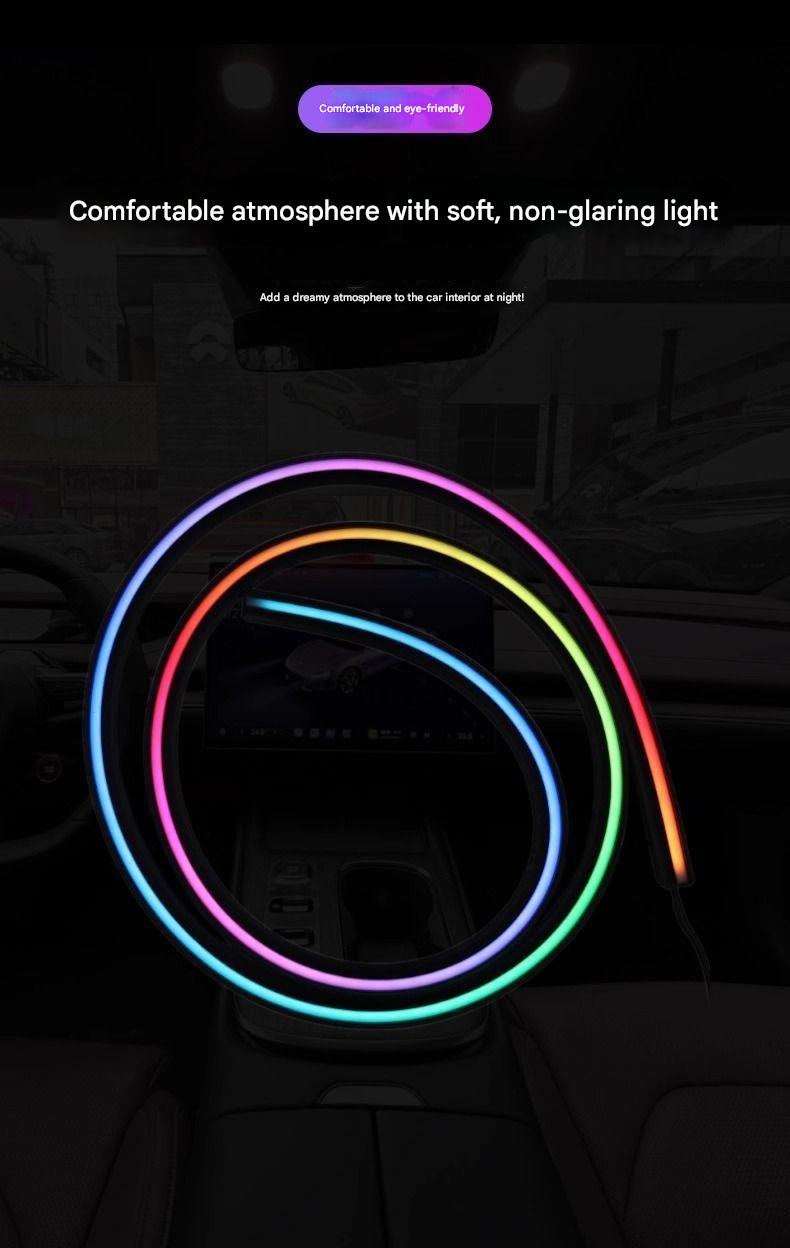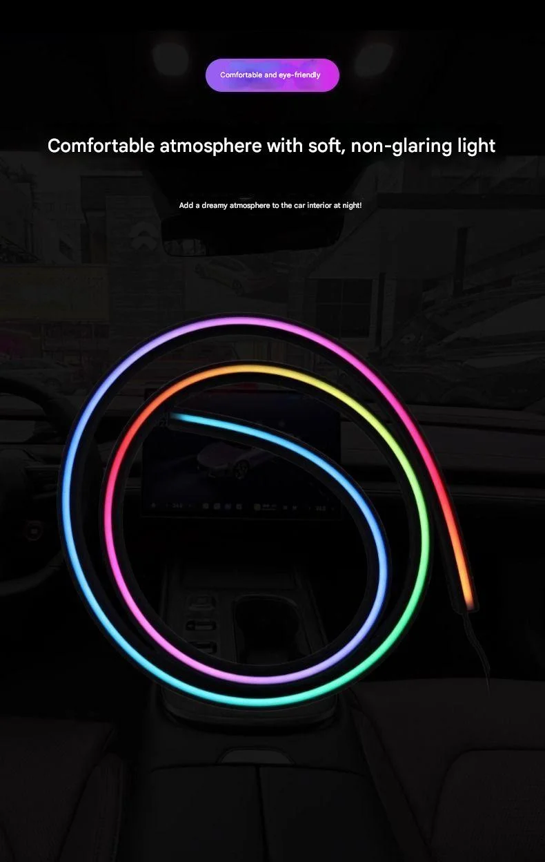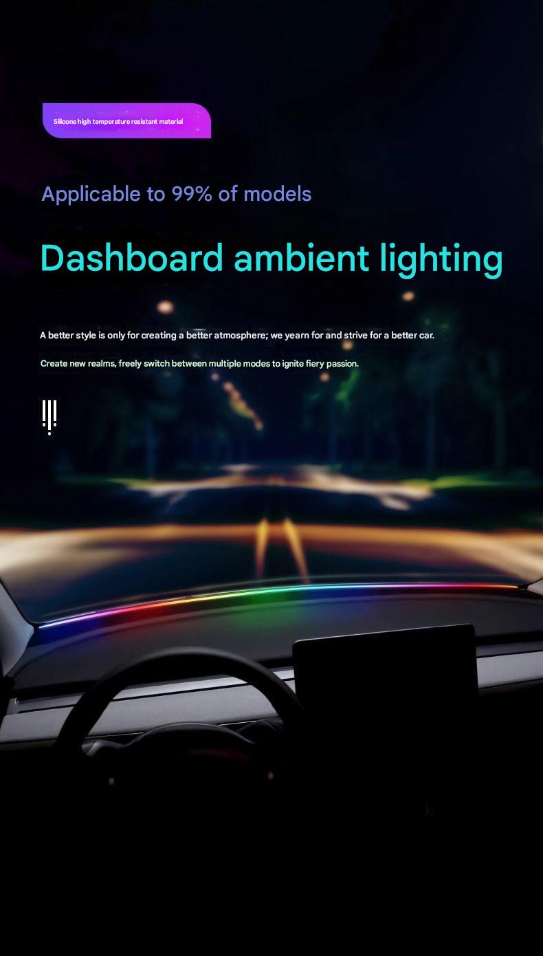 Designed for ultimate driving. The 1.5-meter light strip features a downward-facing illumination channel, projecting a refined glow onto the dashboard without obstructing the windshield. It seamlessly integrates with your vehicle's design lines, enhancing the driver-centric cockpit with dynamic, fluid RGBIC colors for a truly upgraded visual experience.