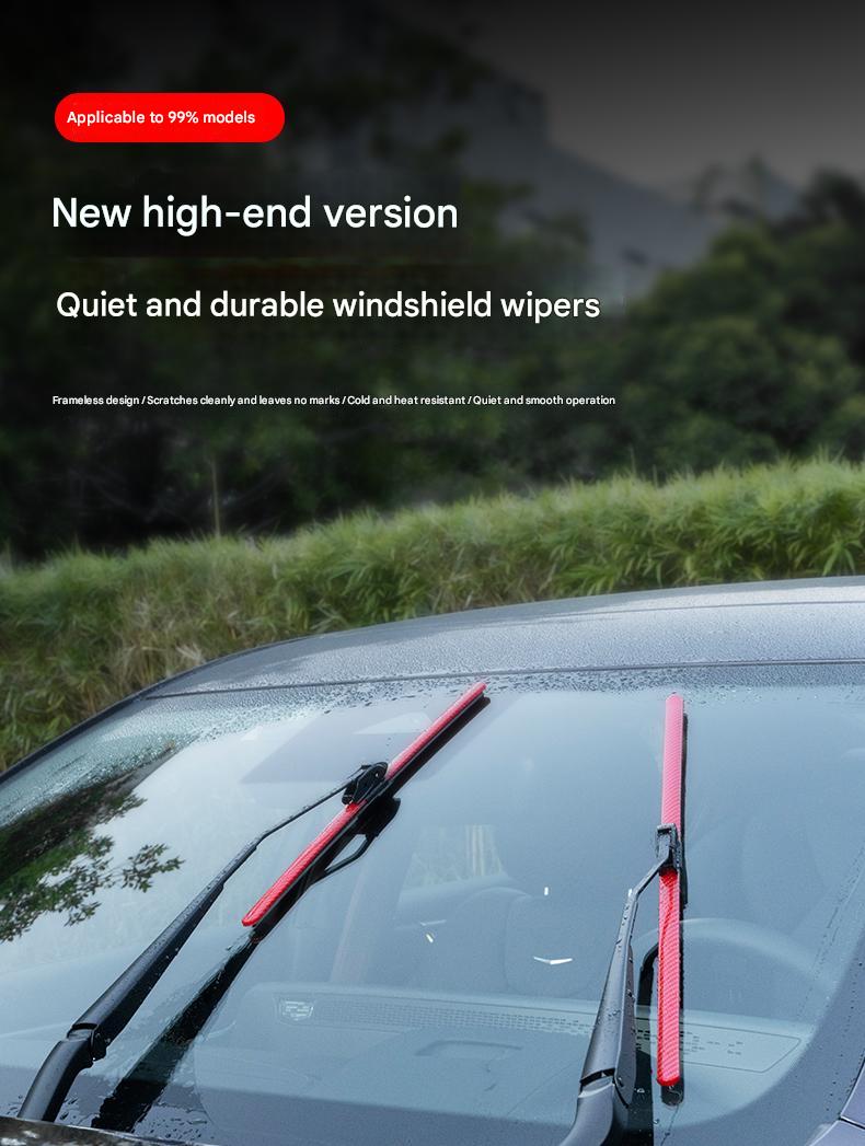 🚘️🌧️【Colored Carbon Fiber Frameless Silent Wiper Blades】These 2-in-1 wiper blades provide superior all-weather driving visibility, safety, and comfort. While driving, water droplets magically condense on the windshield and roll off.