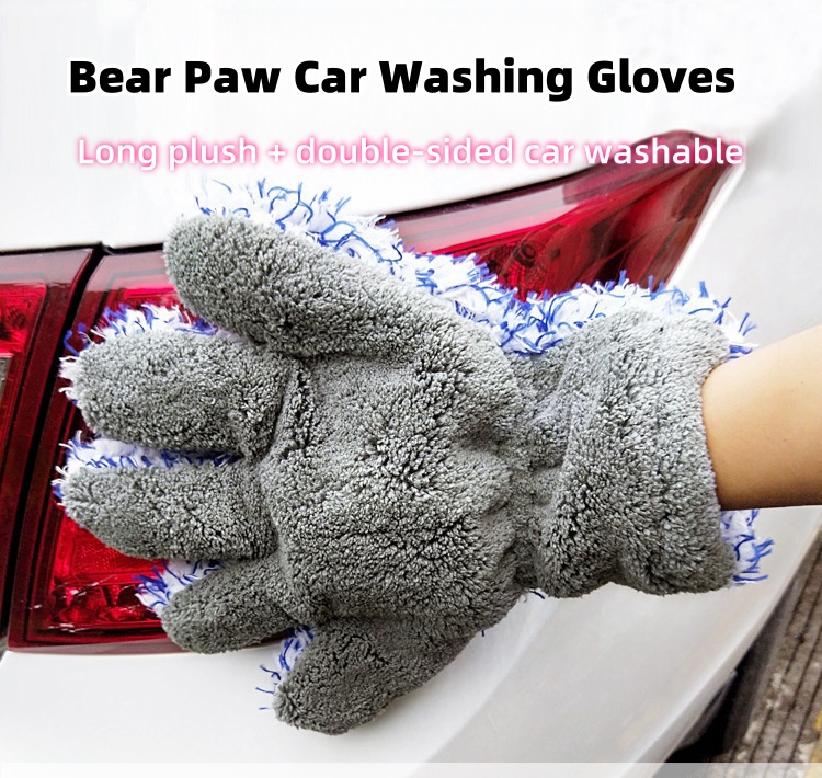[High Quality Craftsmanship] This product is made of 5-micron filaments tightly woven together, and the 6MM long braided tentacles are tightly woven together, making the bear paw car washing gloves fluffy, soft, with strong water absorption and rich foam.