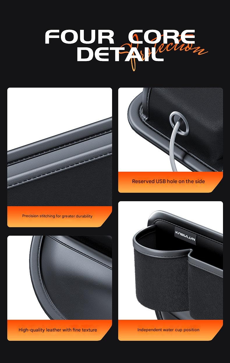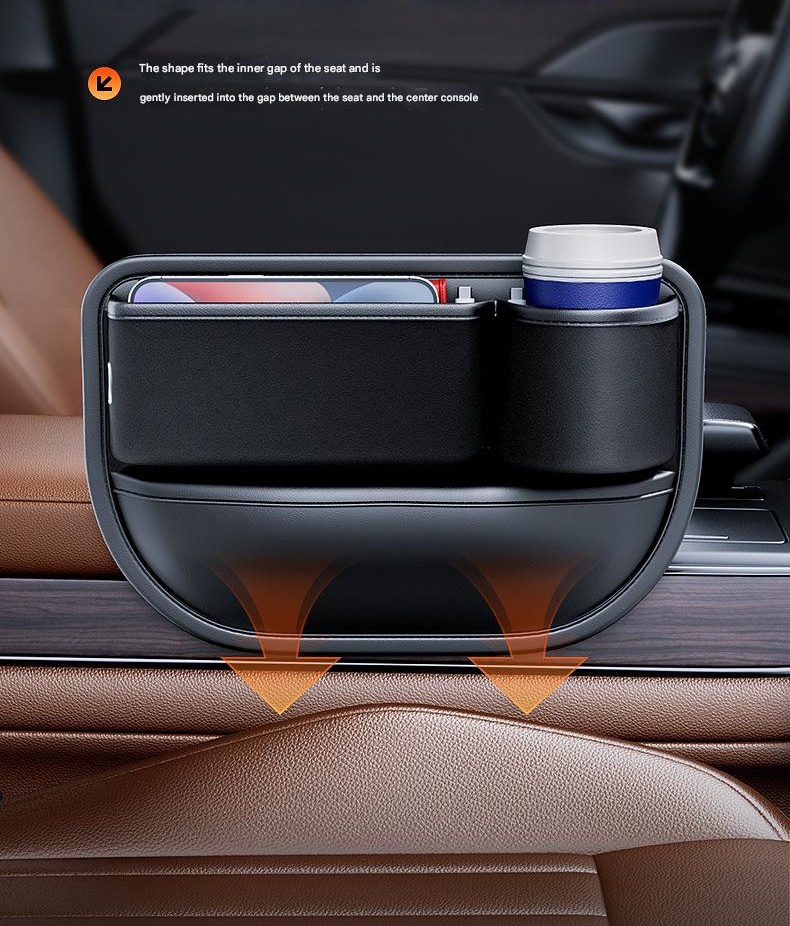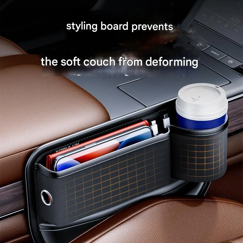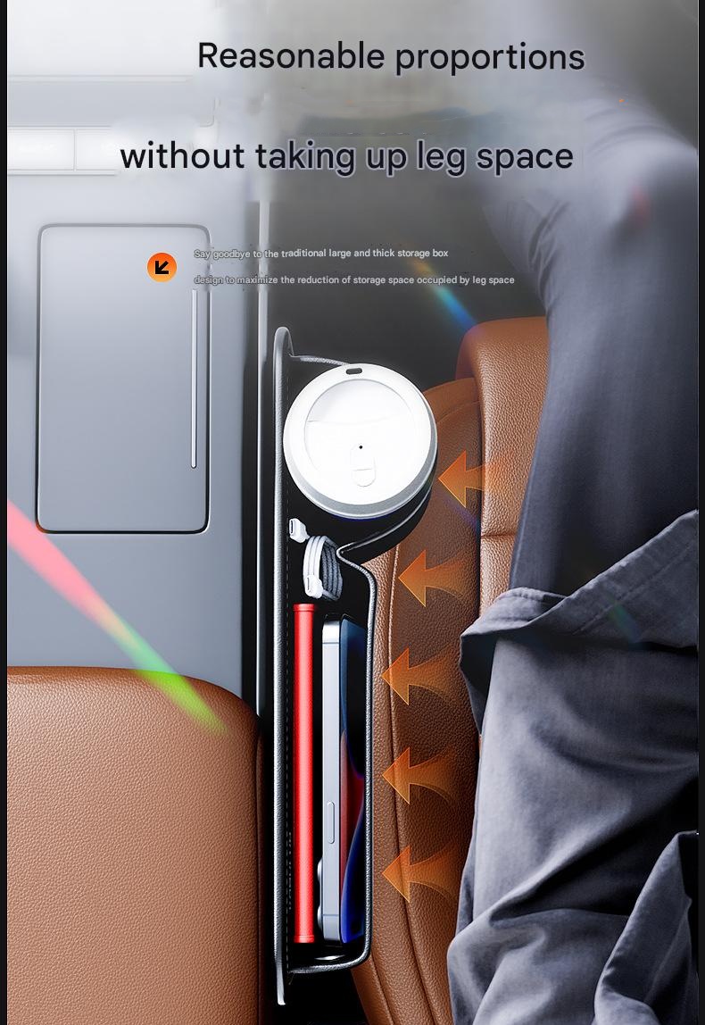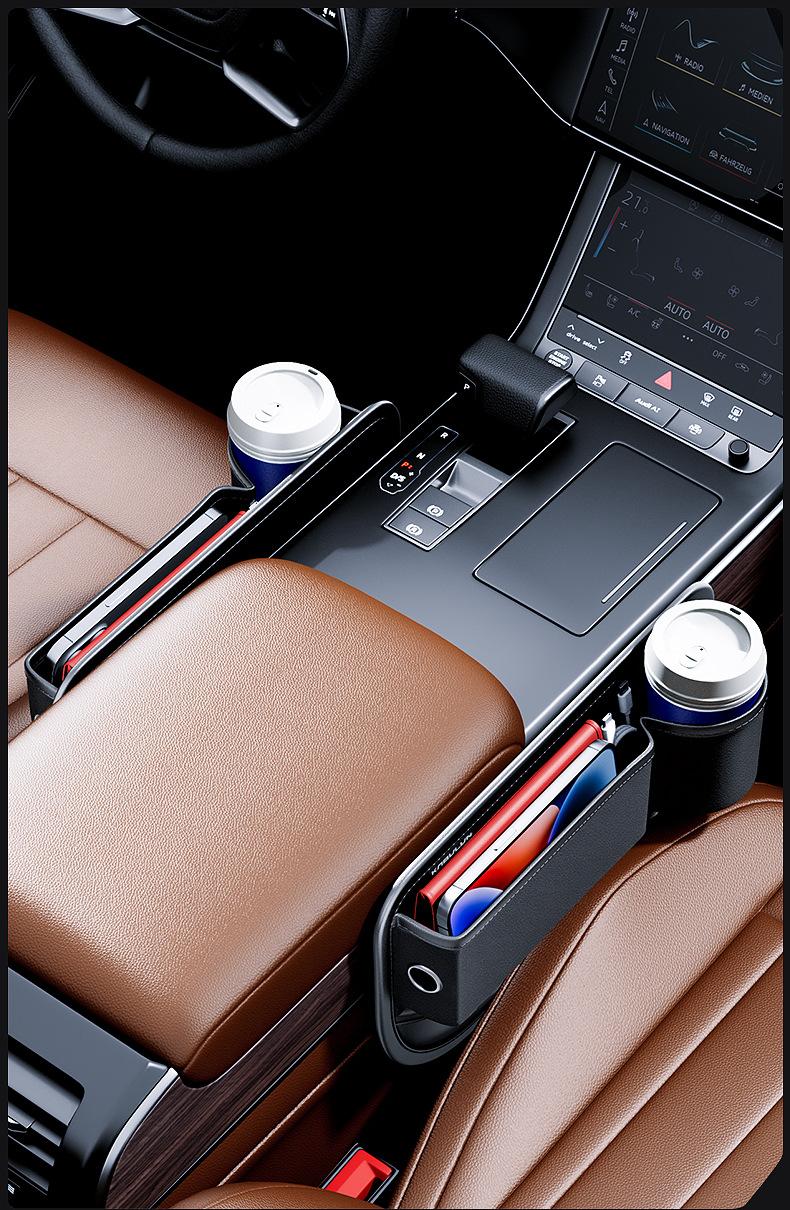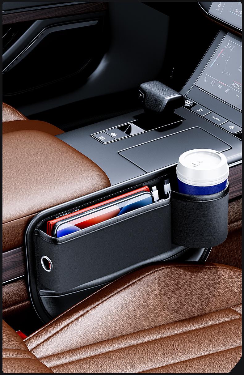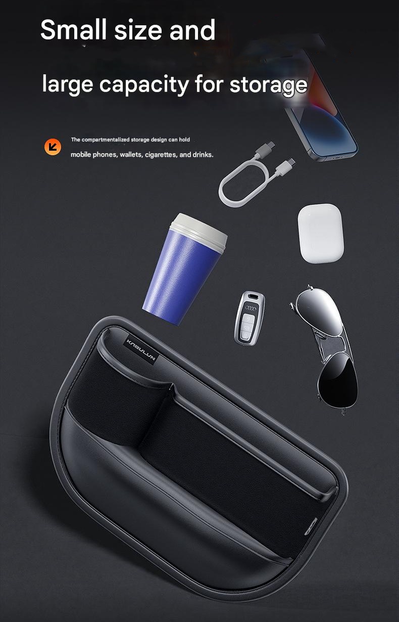 2-IN-1 FUNCTION. Car seat gap storage box + leak-proof plug. The car seat gap filler organizer not only expands the car space, keeps your pocket necessaries organized, but also can be used as car seat gap filler, prevents your phone and other items from falling when you driving.