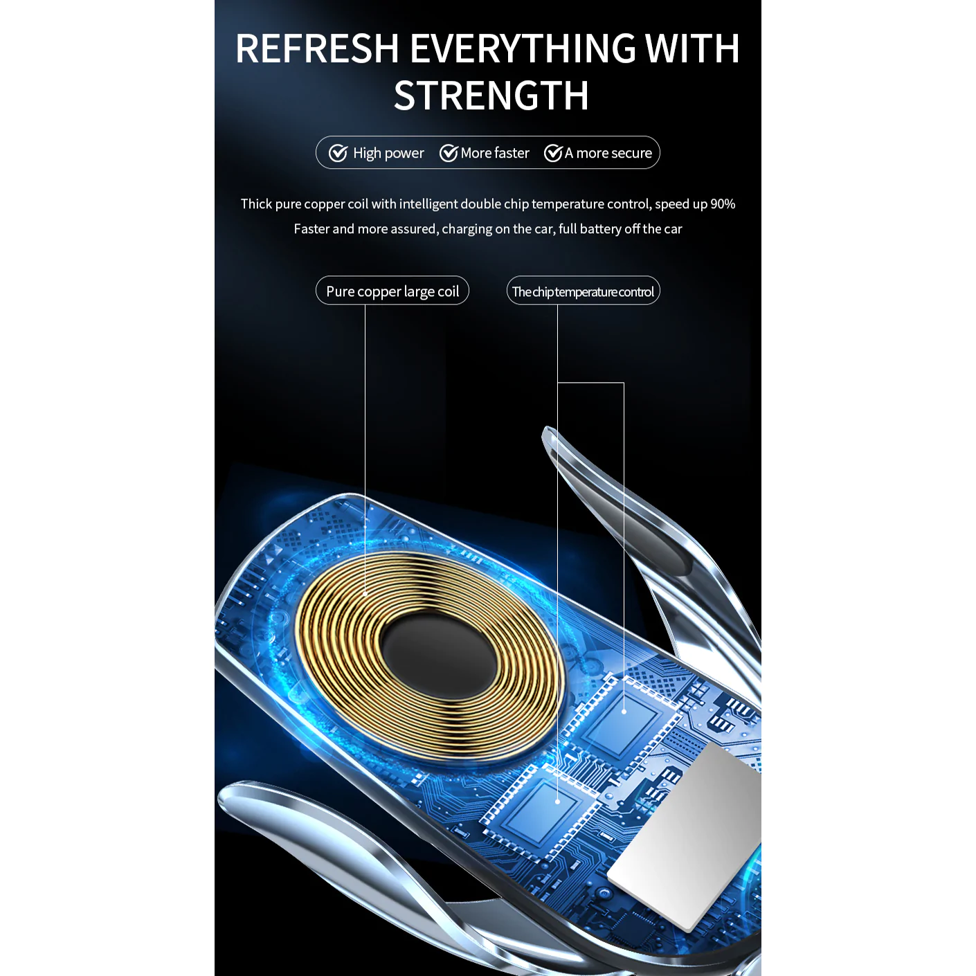 đ ăStability and safetyăThis mobile phone holder is equipped with wireless charging, without removing the wireless charging shell. The mobile phone on-board wireless charger can keep the mobile phone stable. Once the mobile phone is put into the mobile phone on-board wireless charging, the clip will be closed and provide a firm and stable grip. The mobile phone on-board wireless charger automatically clamps, without worrying about sudden braking.