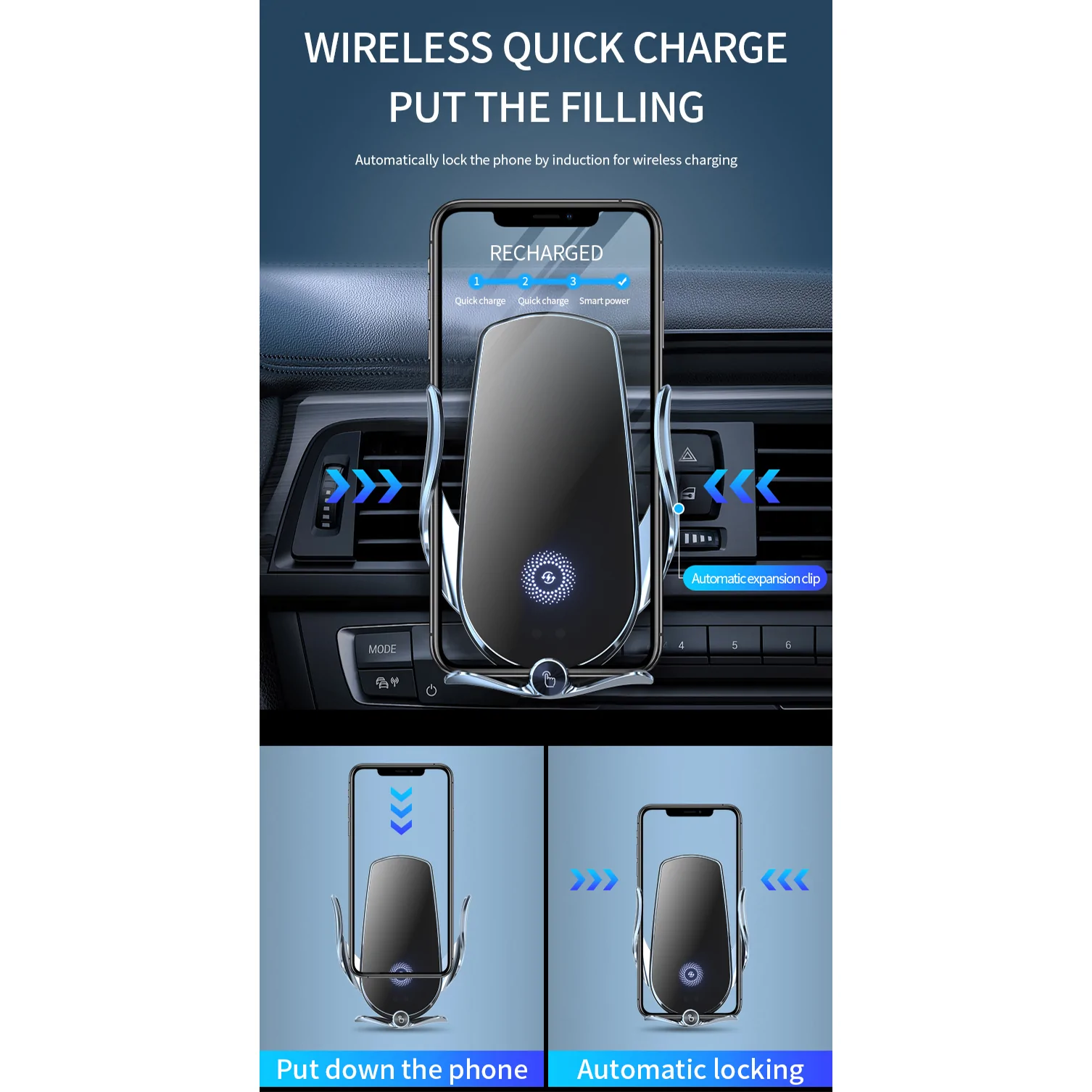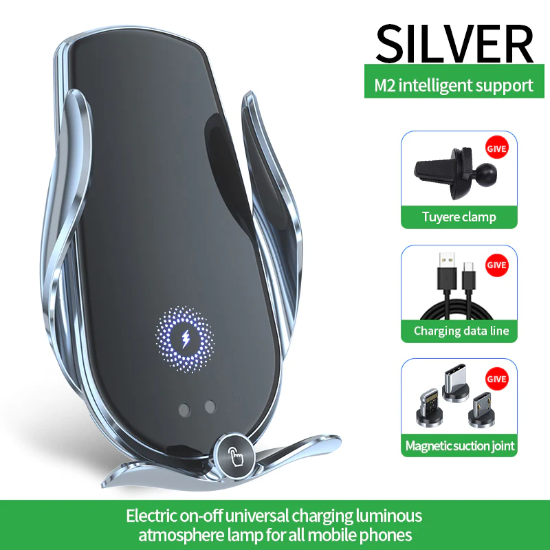 đ ăNew Wireless Mobile Charger Holderă The interesting inductive telescopic mobile phone holder is equipped with wireless charging, 3 free magnetic suction heads, and the new wireless mobile charger holder is automatically clamped. It is easy to hold the mobile phone when using navigation. If your phone supports wireless charging, please connect the data cable directly to the car wireless charging stand, and do not use the magnetic head to charge your phone.