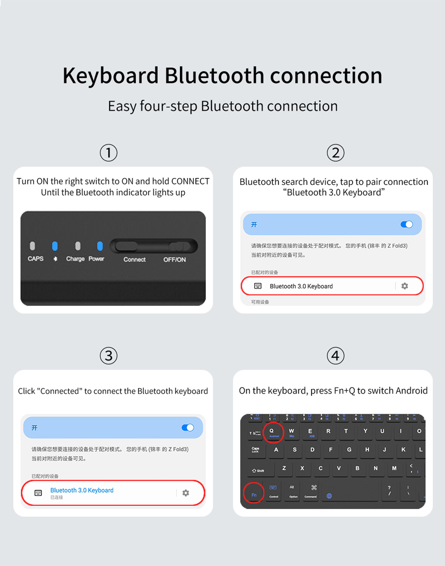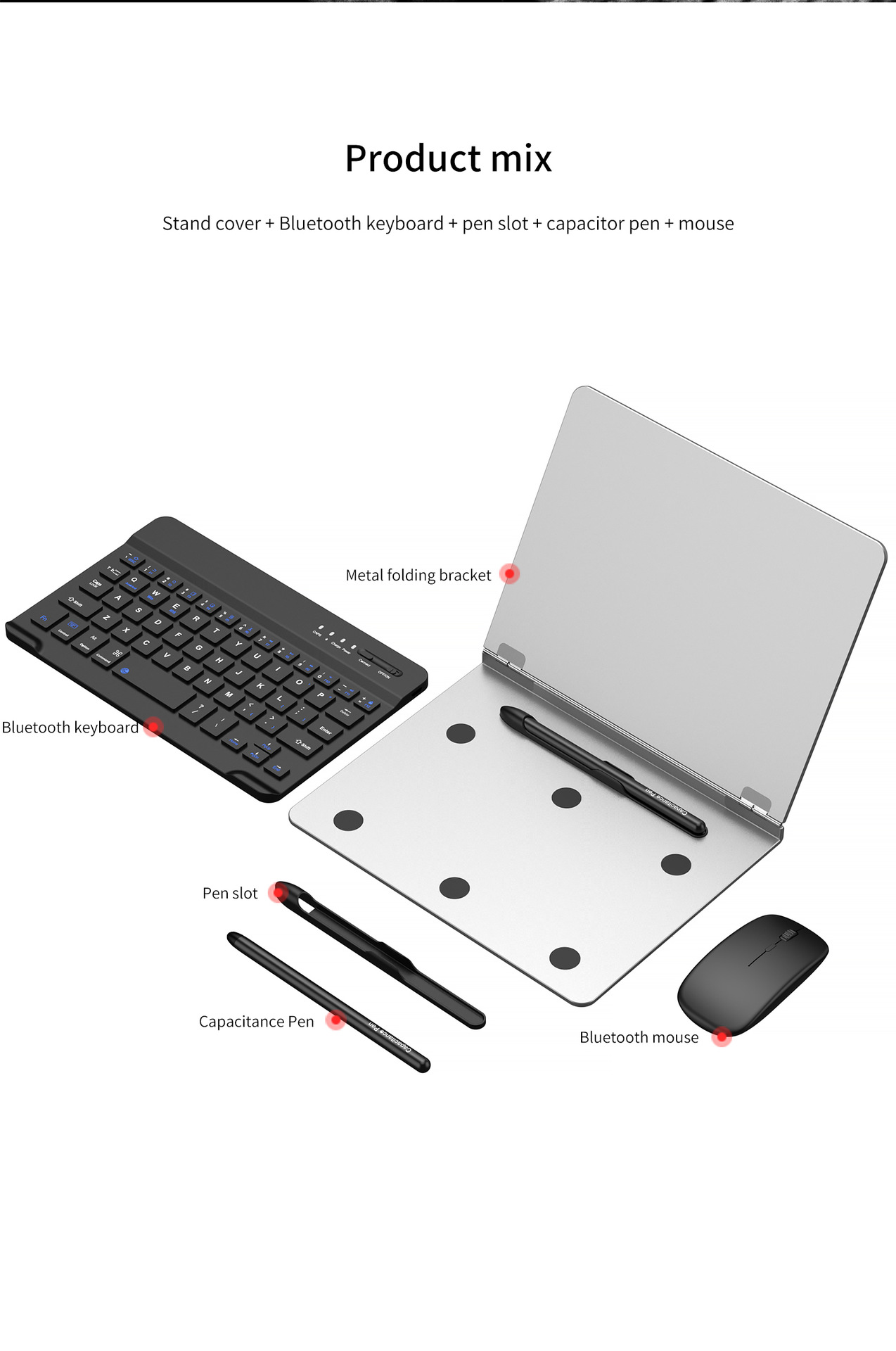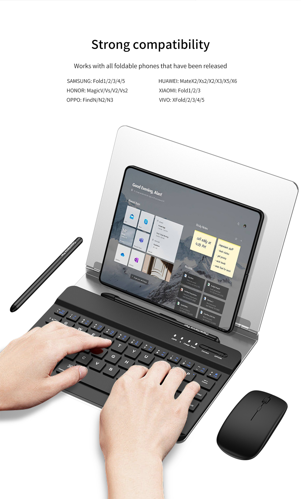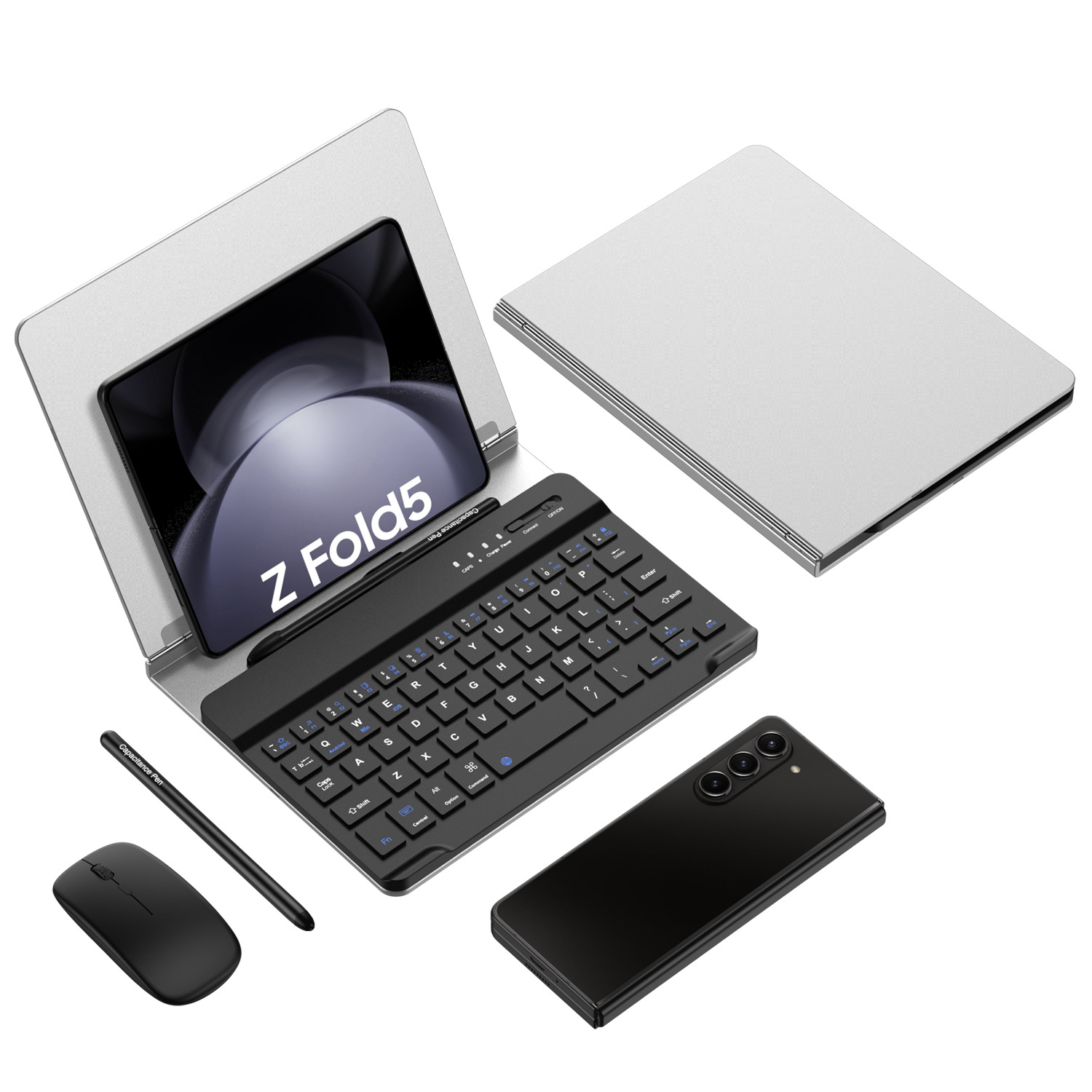 【Compatibility】Designed for Samsung Galaxy Z Fold phones and most Android&IOS series tablets. Including 1x removable wireless keyboard, 1x folding stand, 1x wireless mouse, 1x capacitive pen (not S pen)