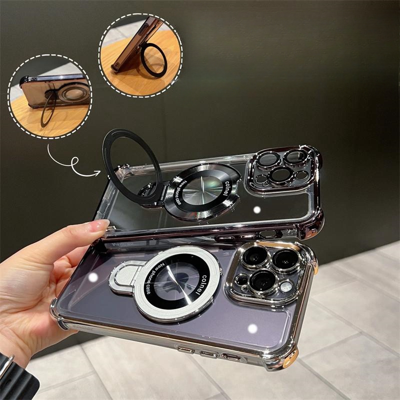 【Compatibility】This phone case is suitable for iPhone series mobile phones. It comes with a stand, supports wireless charging, is equipped with a dust-proof net at the bottom, a high-definition lens film on the back, four-corner airbags to prevent falls, and the frame is higher than the screen protection screen, giving it a cool and high-end feel..