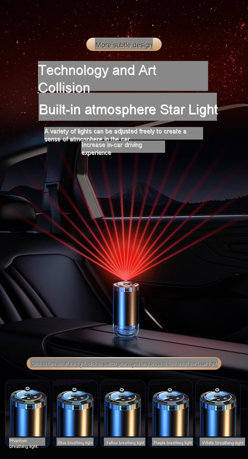 【Star Top Design】: The unique star top and colorful ambient light design of the car aromatherapy diffuser creates a romantic starry sky atmosphere for your car,bringing you a romantic and cozy journey experience