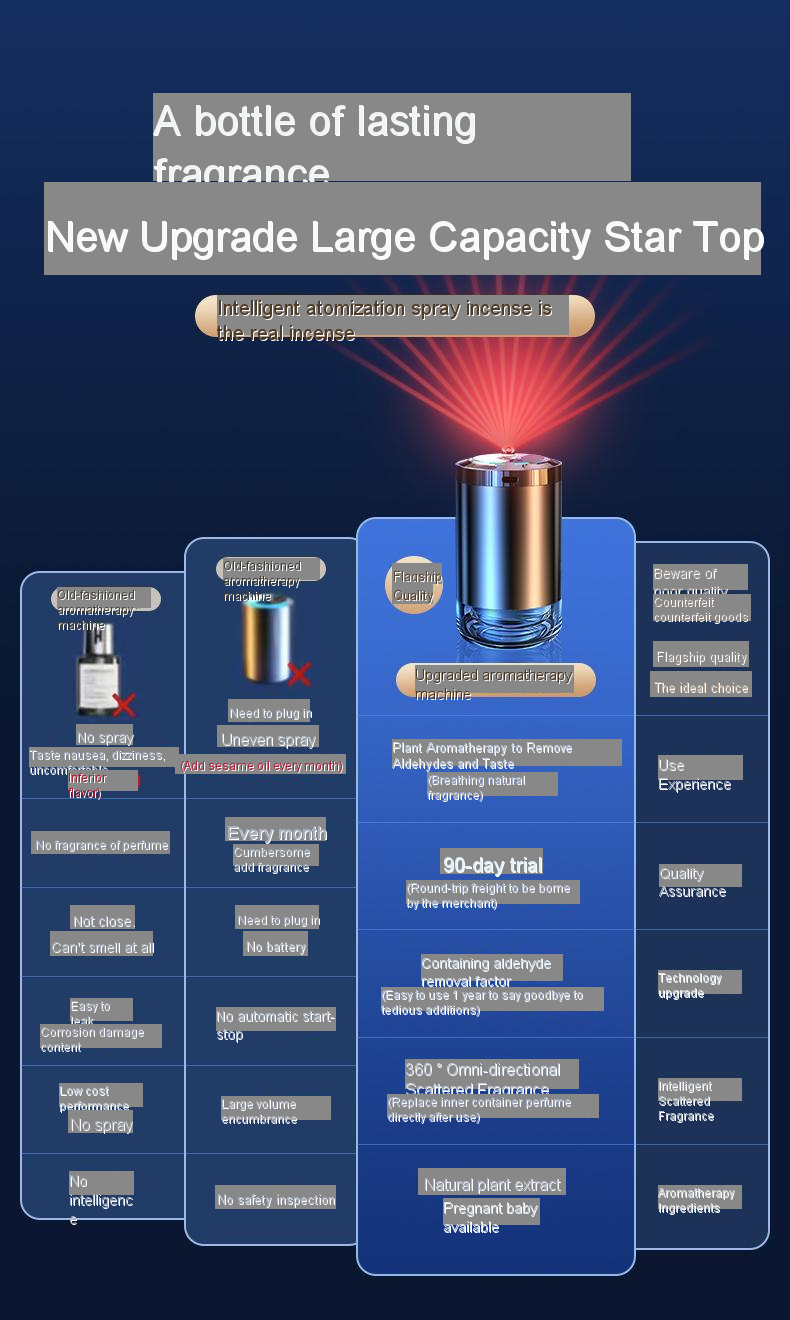【Adjustable Scent Strength】: You can adjust the intensity of the scent with five different settings. Whether you prefer a strong, medium, or light scent, there's a scent for you.