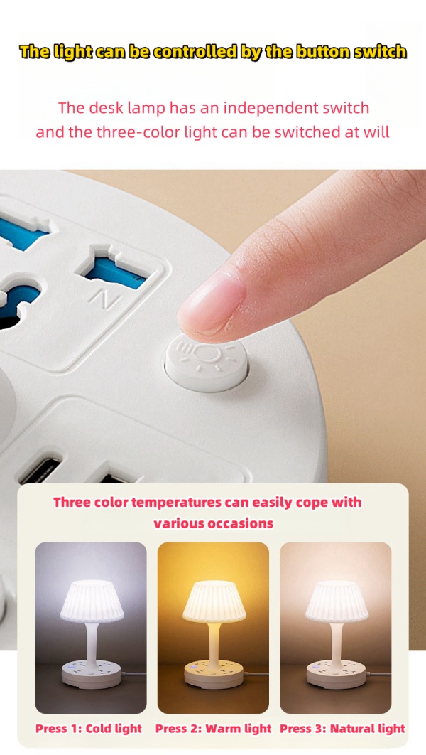 The light is controlled by the key switch. The desk lamp is switched independently, and the three-color light can be switched at will.