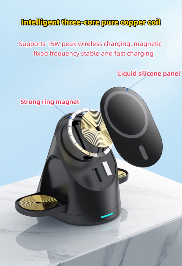 Intelligent three-core pure copper coil supports 15W peak wireless charging, magnetic fixed frequency stable and fast charging.