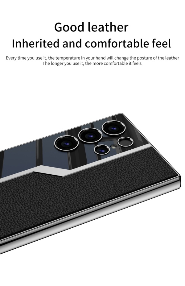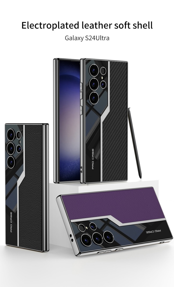 Samsung S24Ultra Mobile Phone Case Electroplated Plain Leather Anti-fall Leather Case